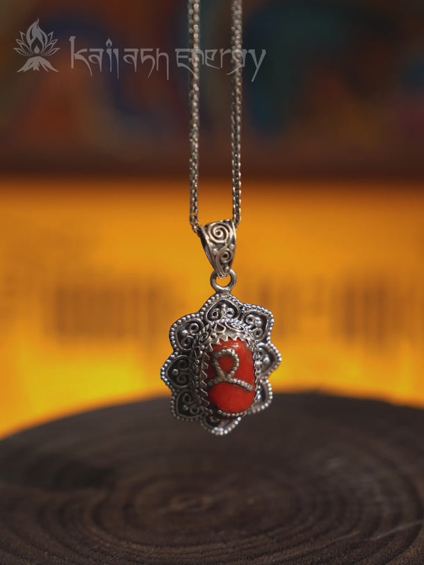 Sacred Love Pendant with Red Coral and Turquoise – A Himalayan Symbol of Devotion and Harmony