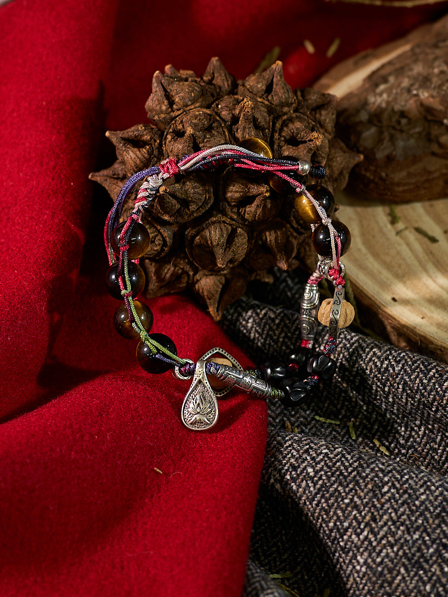 Material: Stering Silver, Tiger's Eye, Wax Rope