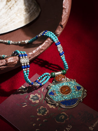 Attract Fortune Vitality Necklace | Tibetan Amber Turquoise Coral with White Copper