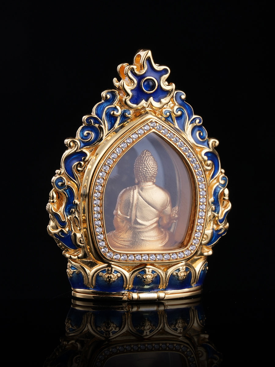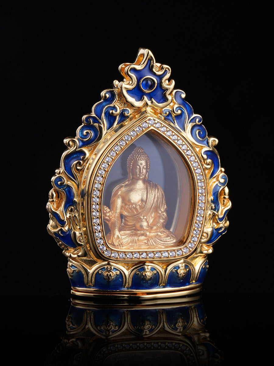 Healing Blessing Peace Medicine Buddha Gau Box Silver Statue