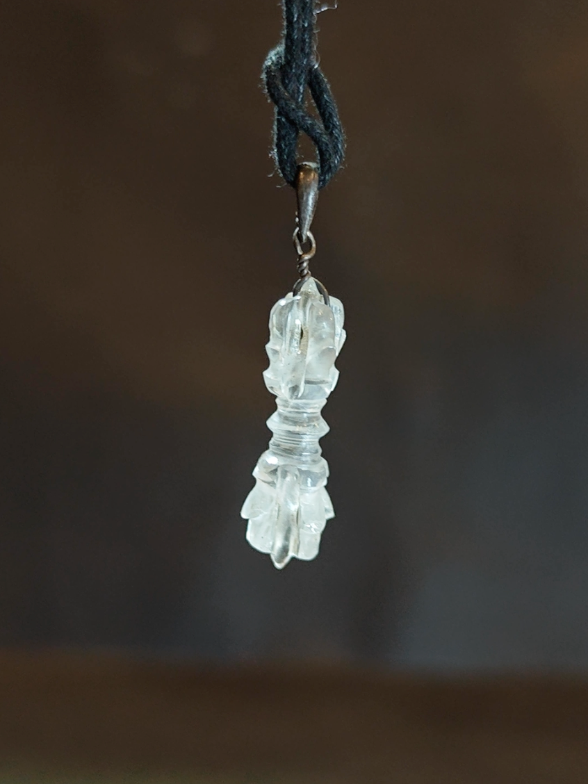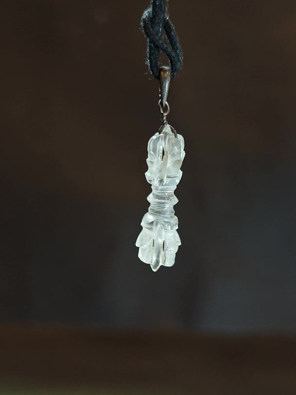 Tibetan-Style Snowlight Vajra Clear Quartz Pendant
