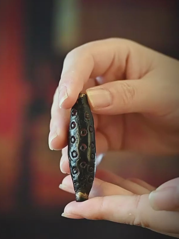 Nyingma 36-Eye Rehula Amulet Pendant | Tibetan Long-Mantra Worn Mud Necklace