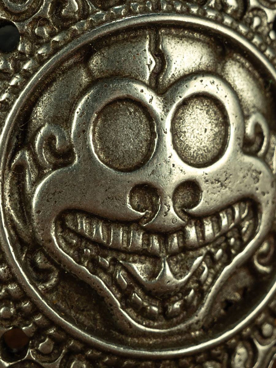 This Cold Iron Corpse Protection Amulet is an extremely rare and historically significant ritual object in Tibetan Buddhism. The use of cold iron made it particularly difficult to craft such small ritual items at the time, and the craftsmanship of this amulet is exquisite and refined.his amulet not only embodies spiritual protection but also holds a profound spiritual strength. Its ancient craftsmanship and unique artistic expression make it a priceless treasure. Wearing it provides a balance of mind and spirit, offering a connection to both spiritual power and Tibetan Buddhist culture, whether used as an everyday pendant or kept as a collector’s item.