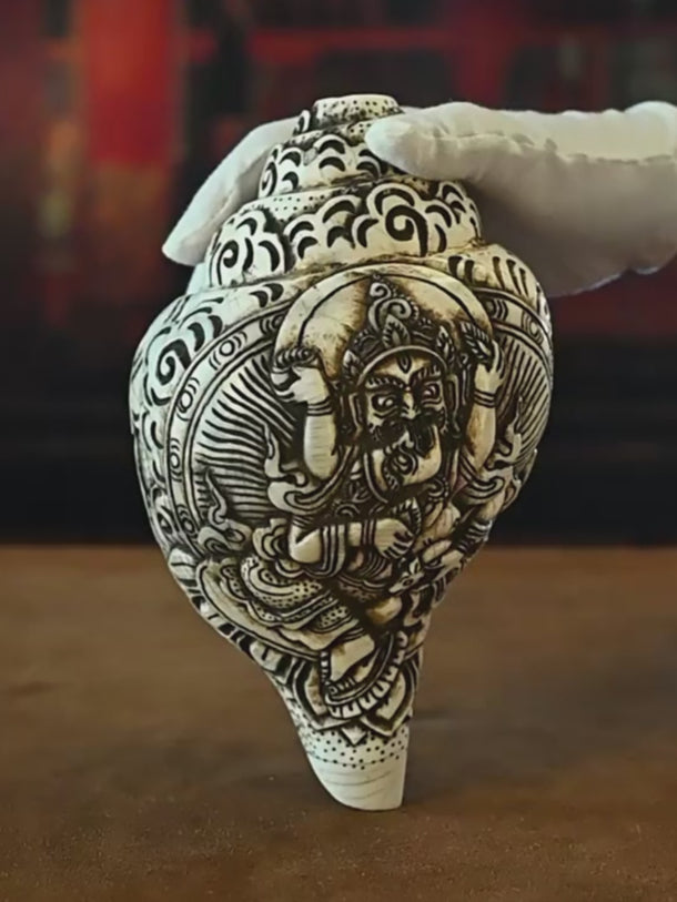 The carving of this conch shell is exceptionally intricate, with high craftsmanship difficulty. Any mistake could have resulted in damage, requiring immense skill and courage from the artisans.