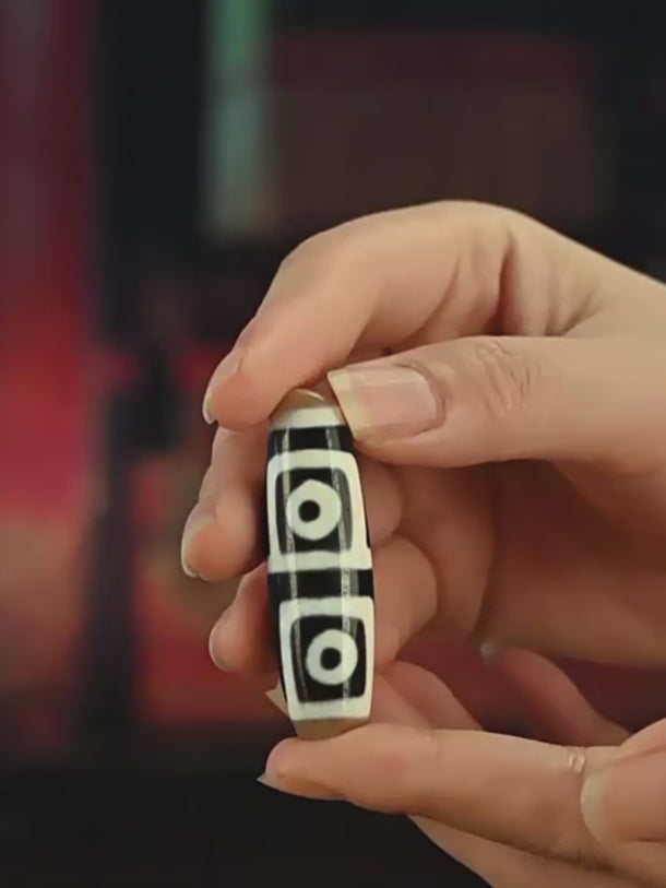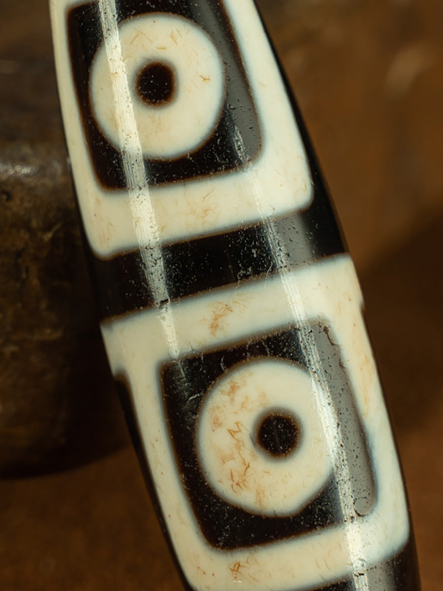 Tibetan Rare Pure Cinnabar Dzi Bead Four-Eye Pendant