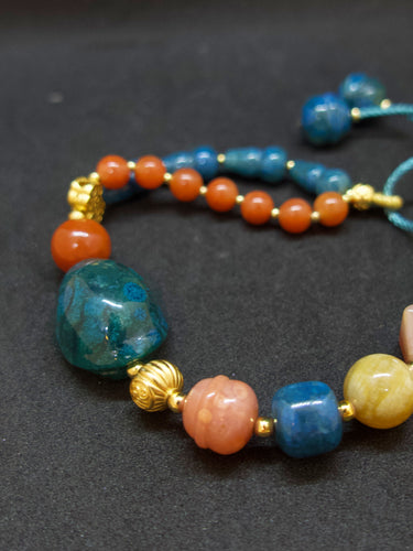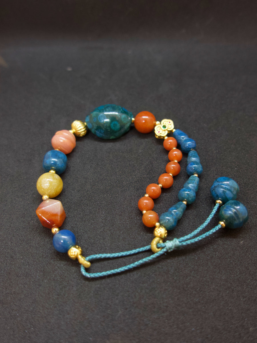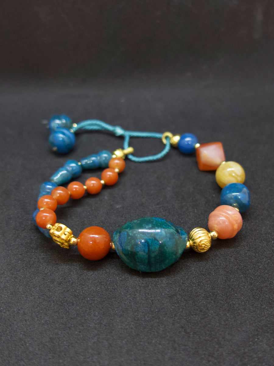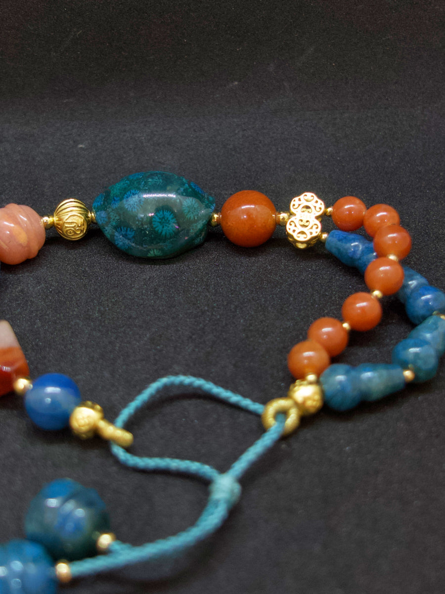 Agatized Coral Gold-Silver Tassel Energy Bracelet