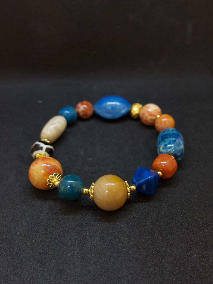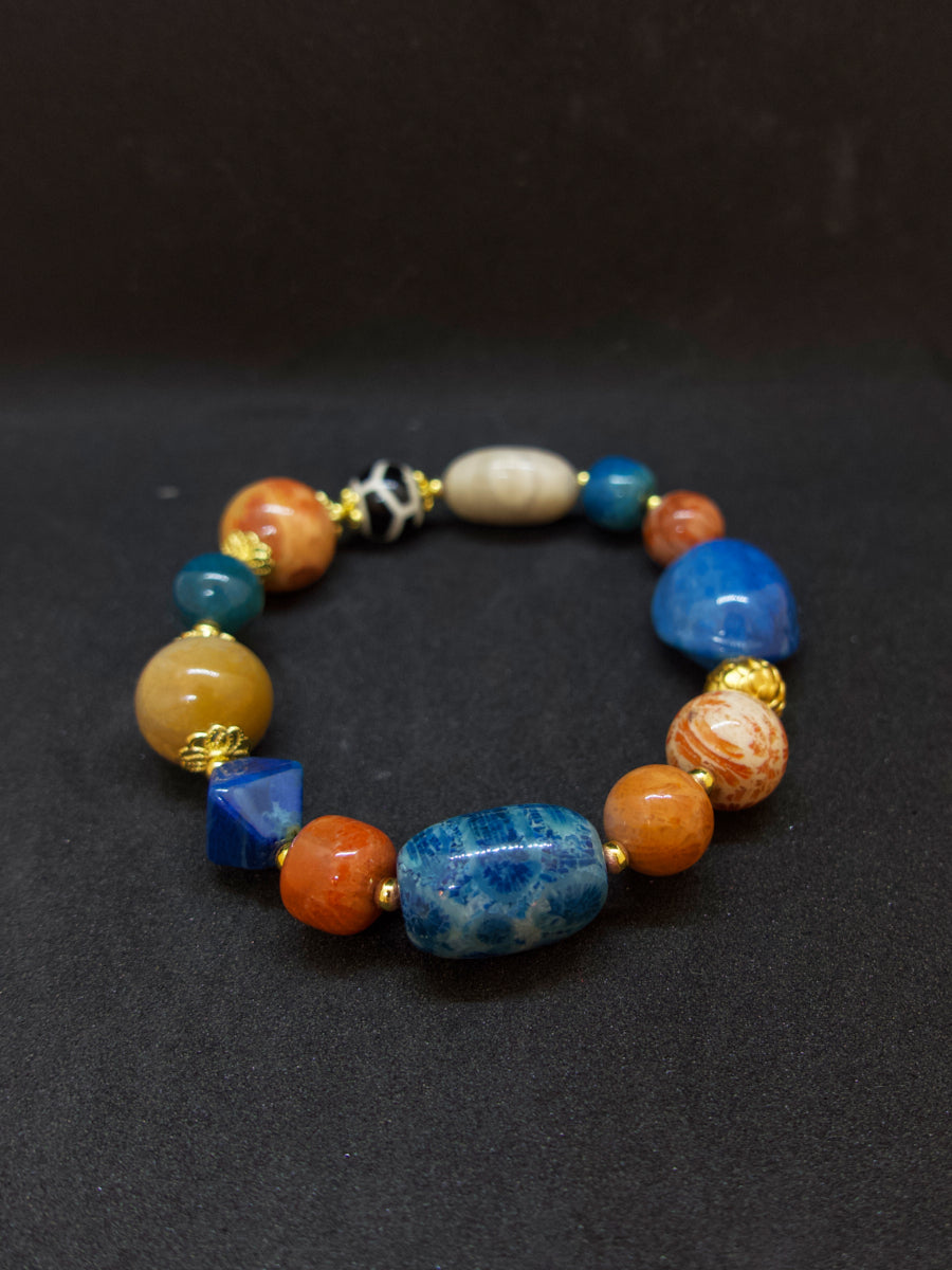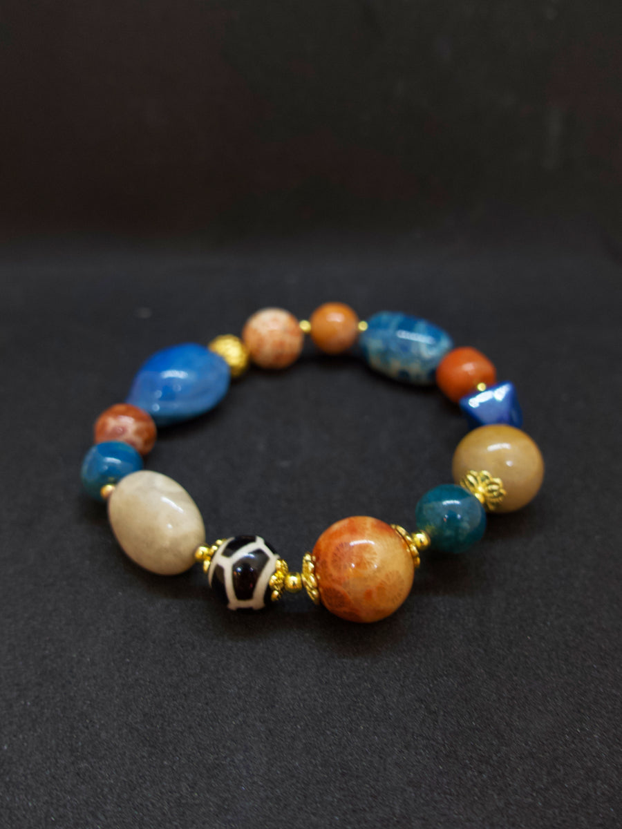 Agatized Coral & Turtle-Back Longevity Bead Protection Bracelet