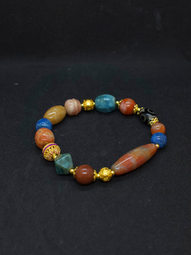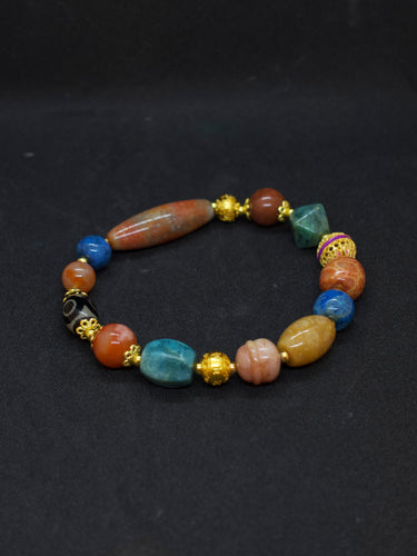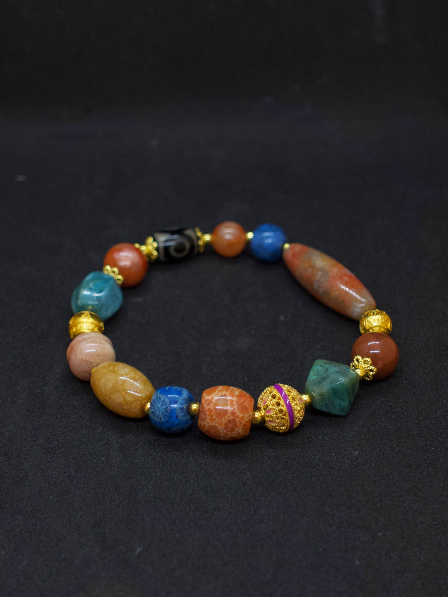 Agatized Coral Wisdom Guardian Three-Eyed Dzi Silver Energy Bracelet