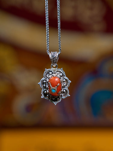 Heart of Harmony Pendant with Red Coral and Turquoise – A Himalayan Symbol of Love and Compassion