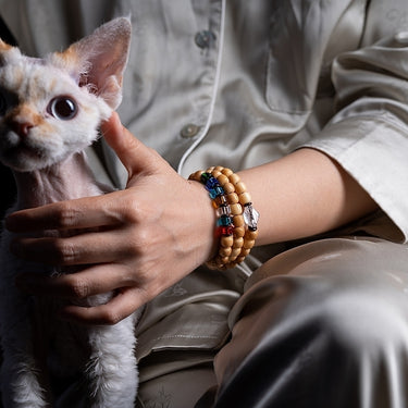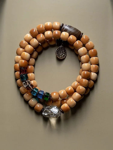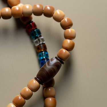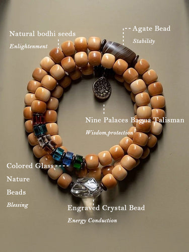 Bodhi Seed 108 Mala Necklace – Nine-Palace Bagua & Five-Color Crystal Design