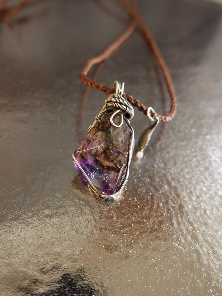 The Amethyst Spirit Awakening Pendant is a masterpiece of spiritual energy and artisanal craftsmanship. The deep purple hues of the raw amethyst, expertly encased in elegant sterling silver wire, symbolize clarity, wisdom, and spiritual awakening. This pendant amplifies the energy of intuition and meditation, making it the perfect companion for those seeking to elevate their inner journey. The intricate wire wrapping highlights the crystal's natural beauty while providing a timeless and unique design.