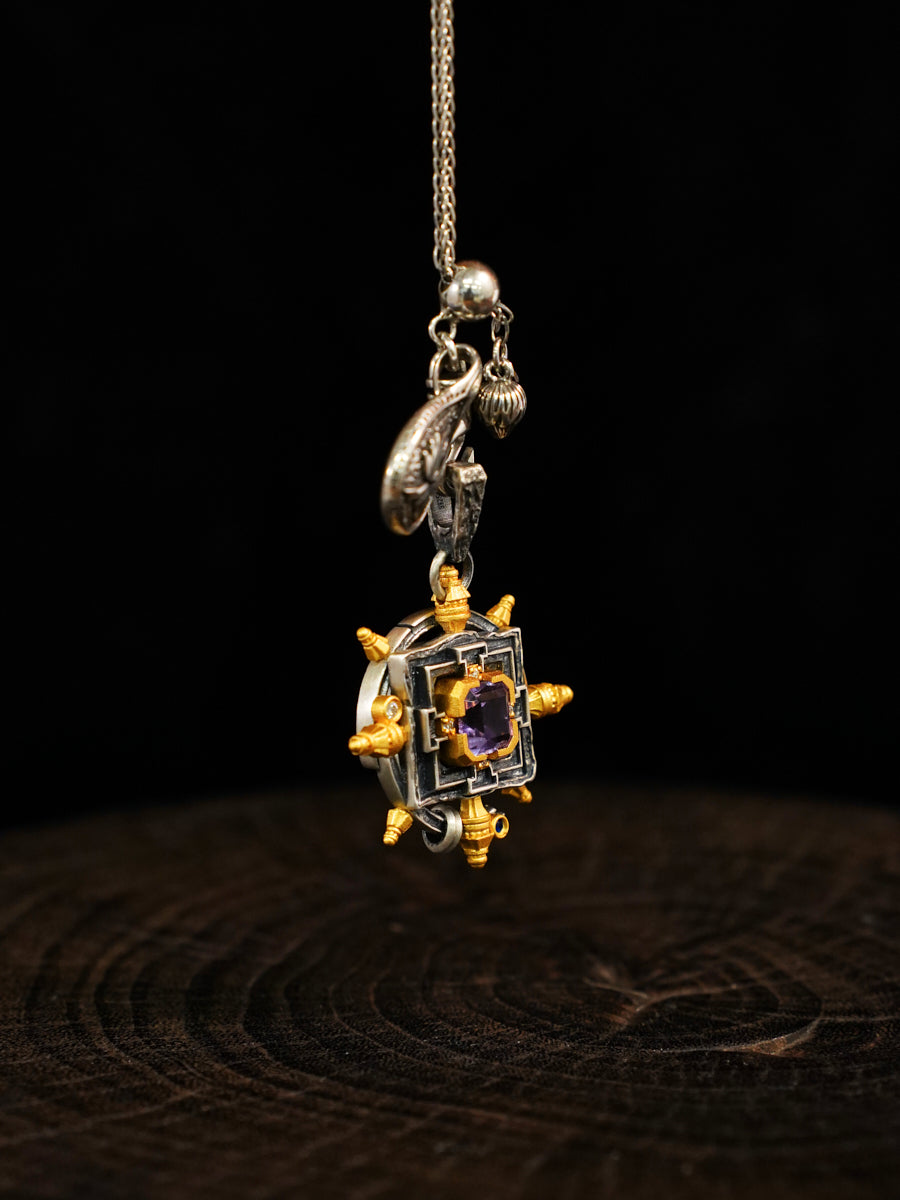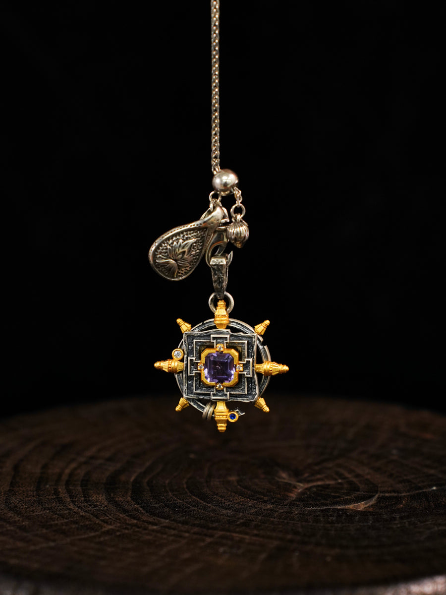 Ethereal Harmony Gemstone Mandala Silver Pendant