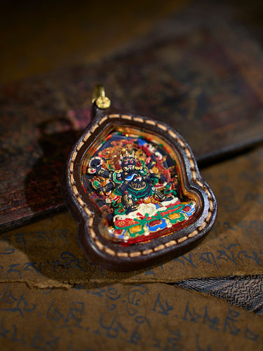Fierce Protection Six-Armed Mahakala Tsa Tsa Leather Pendant