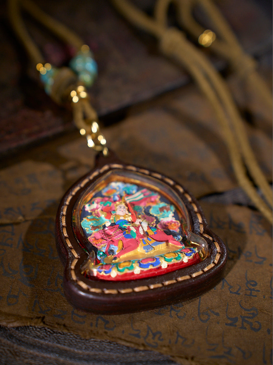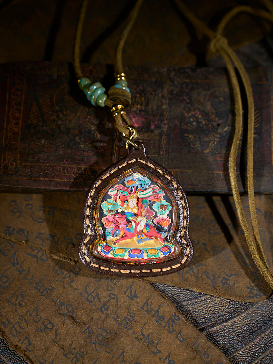 Heroic Blessing Gesar King Tsa Tsa Leather Pendant