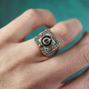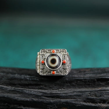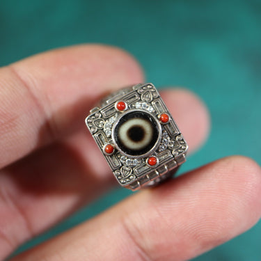 【Unique Item】Gau Box Live Mouth Dzi Beads Ring