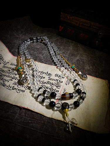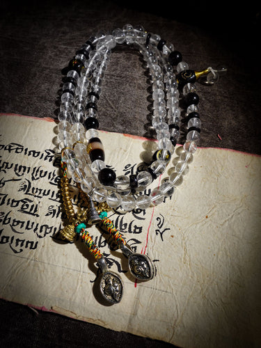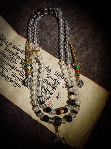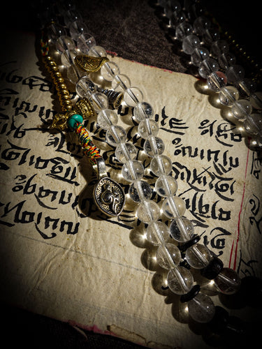Clarity Protection Mala | Tibetan 108 Clear Quartz Beads with Healer Bead & Zakirum Amulet