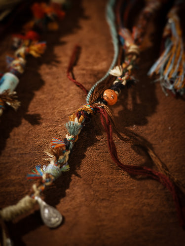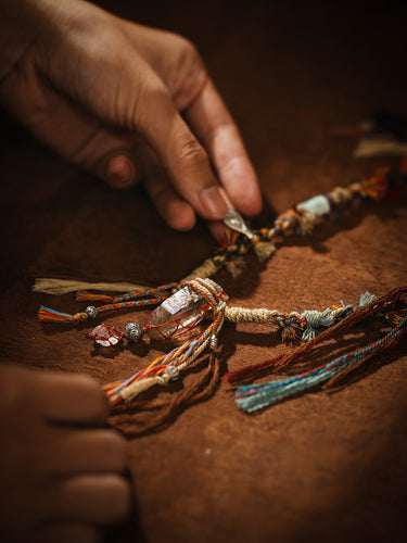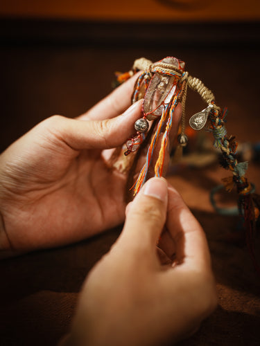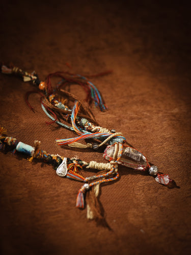 Features:Tibetan Quartz for grounding and resilience/Clear Quartz for clarity, purification, and balanceTibetan weaving with multicolored cords symbolizing the five elements
