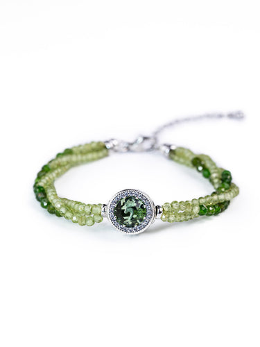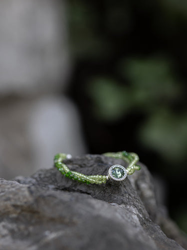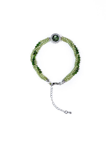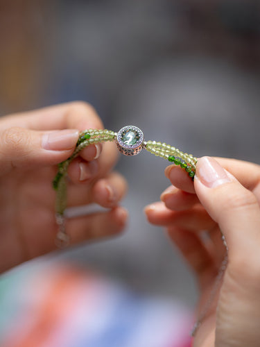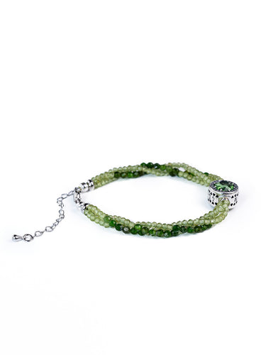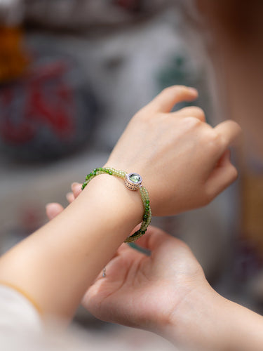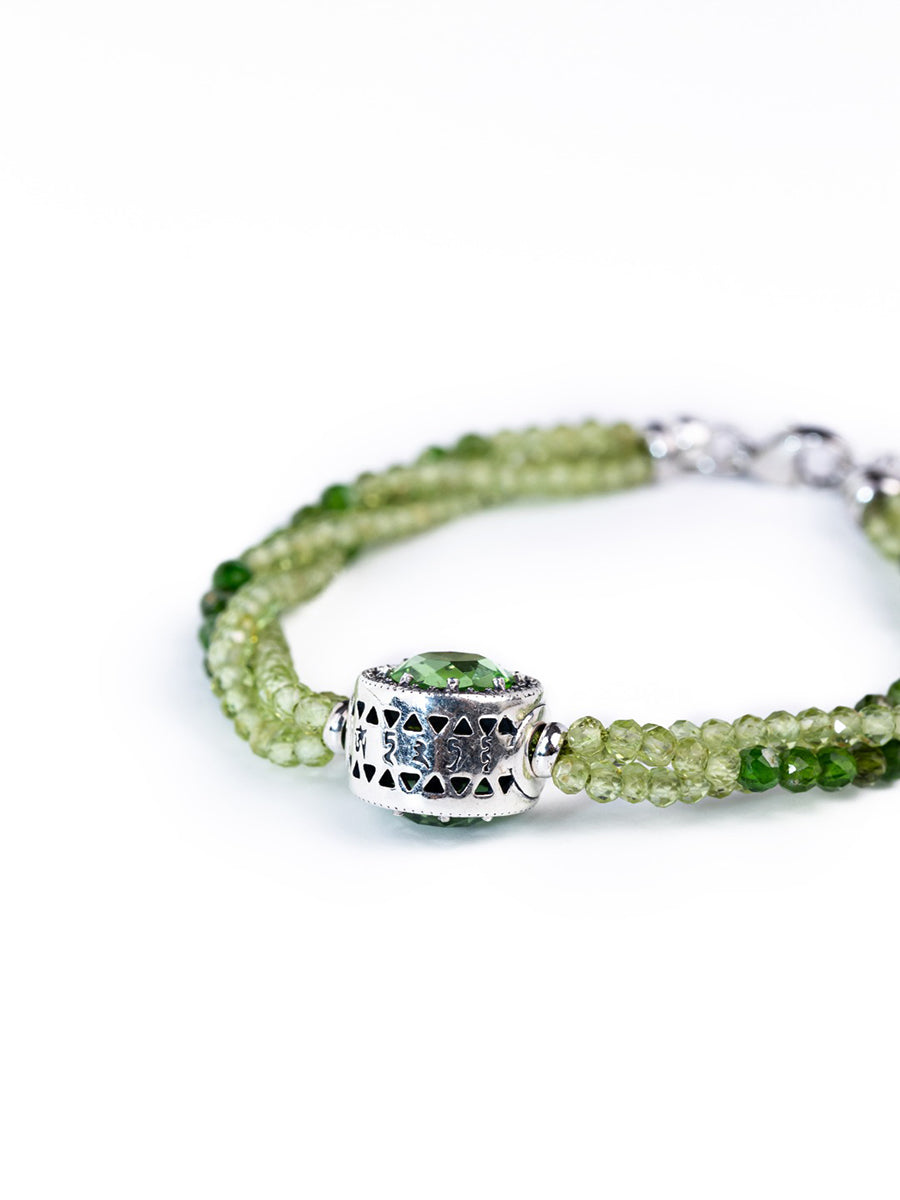 The Green Tara Peridot Bracelet is crafted from radiant peridot gemstones that symbolize renewal, hope, and emotional healing. Known as the Stone of the Sun, peridot carries gentle green energy that dispels negativity, balances emotions, and brings harmony and joy to the wearer.