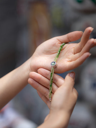 Wearing this bracelet invites Green Tara’s blessings of peace, prosperity, and spiritual clarity, helping the wearer achieve serenity and success in all endeavors.