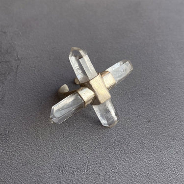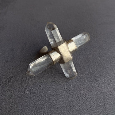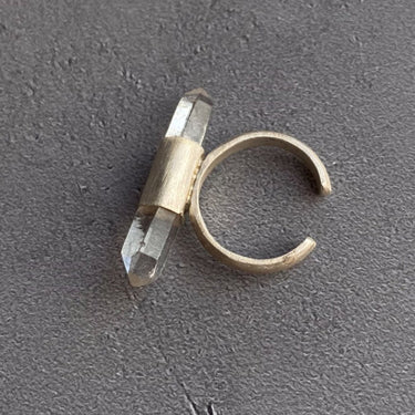 Twin Peaks Crystal Ring Tibetan Clear Quartz & Silver Purity Power Duo