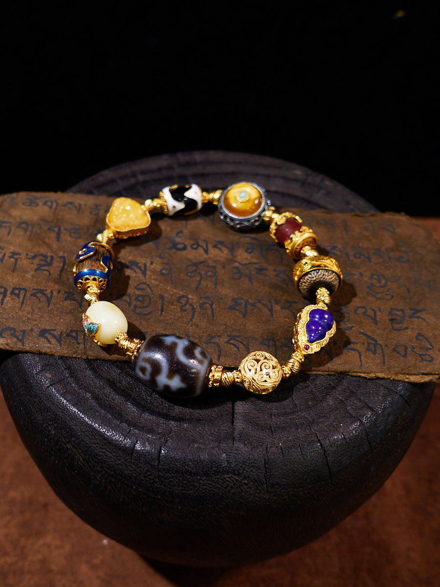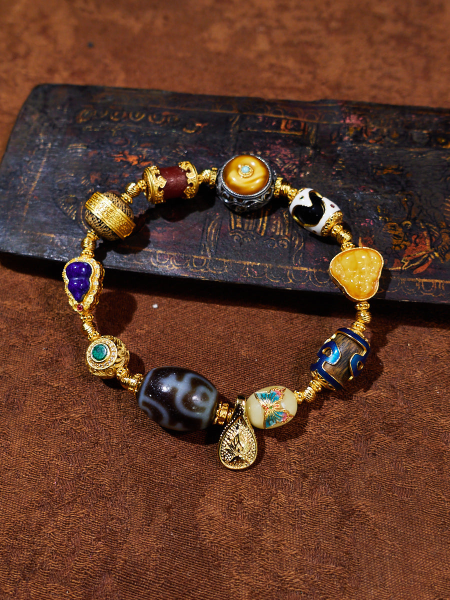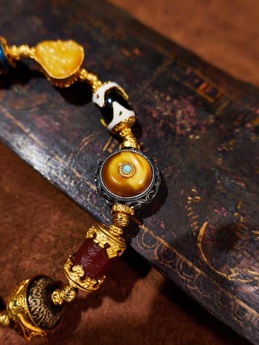 Four Treasure Vases Multicolor Agarwood 18K Gold Bracelet