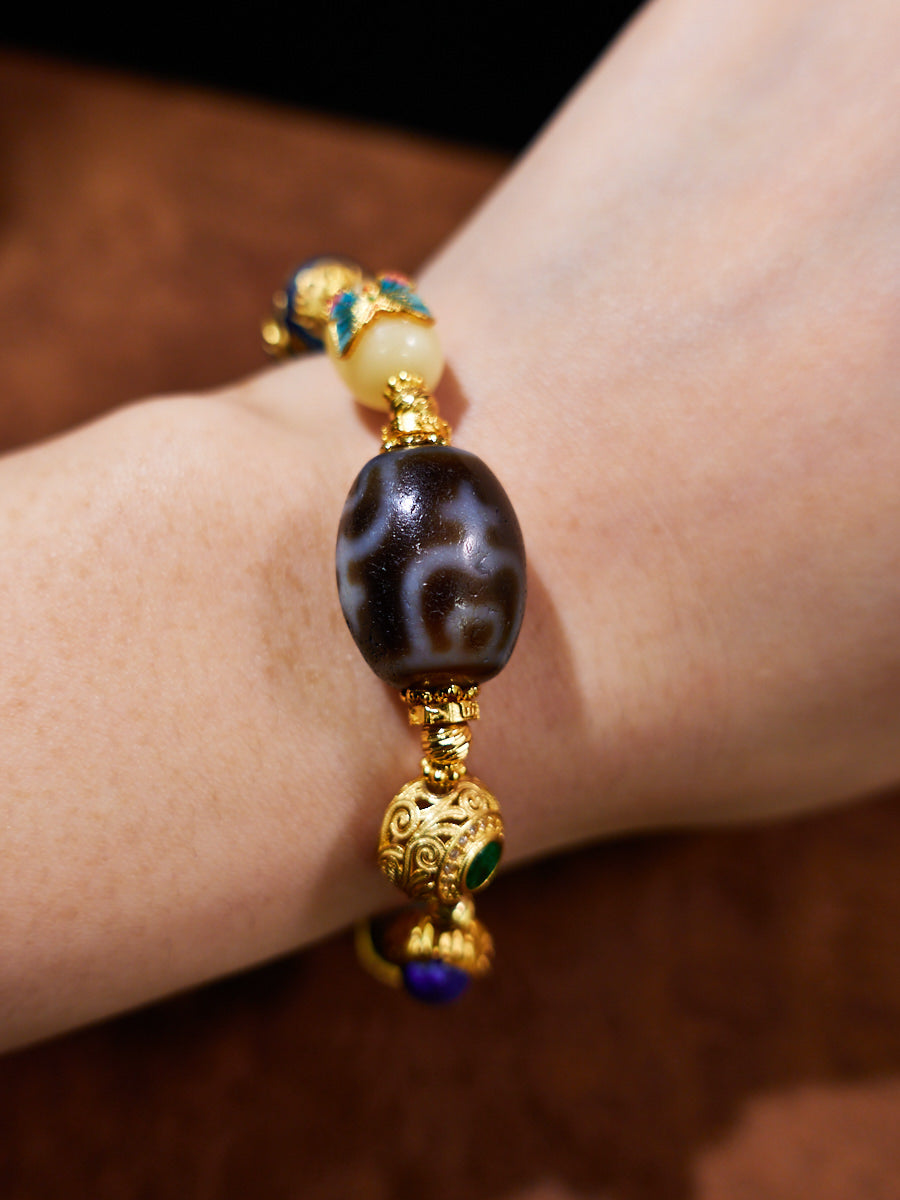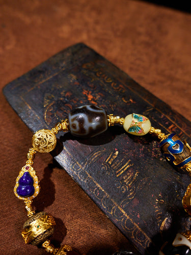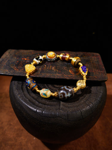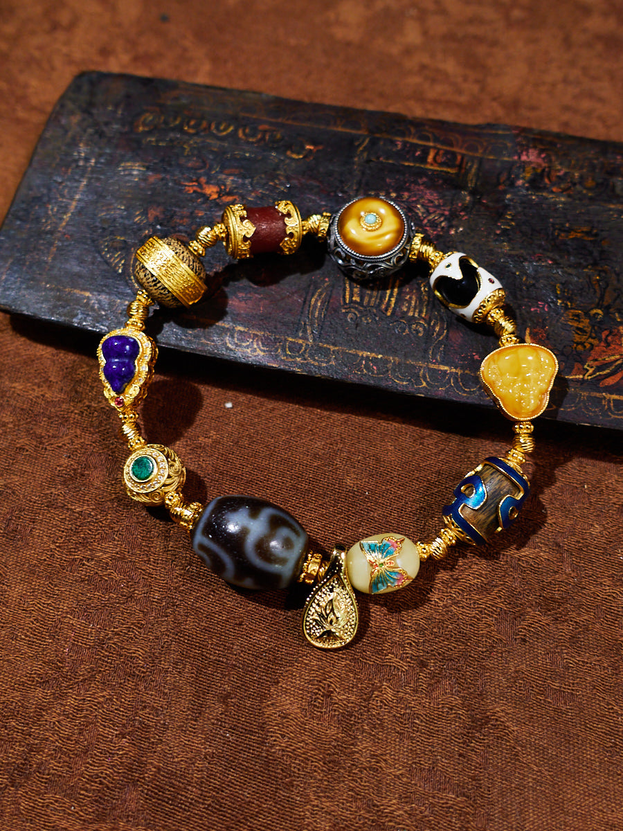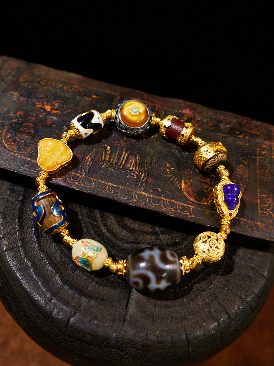 Four Treasure Vases Multicolor Agarwood 18K Gold Bracelet