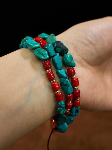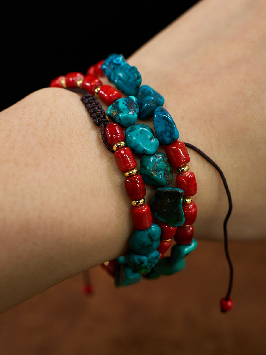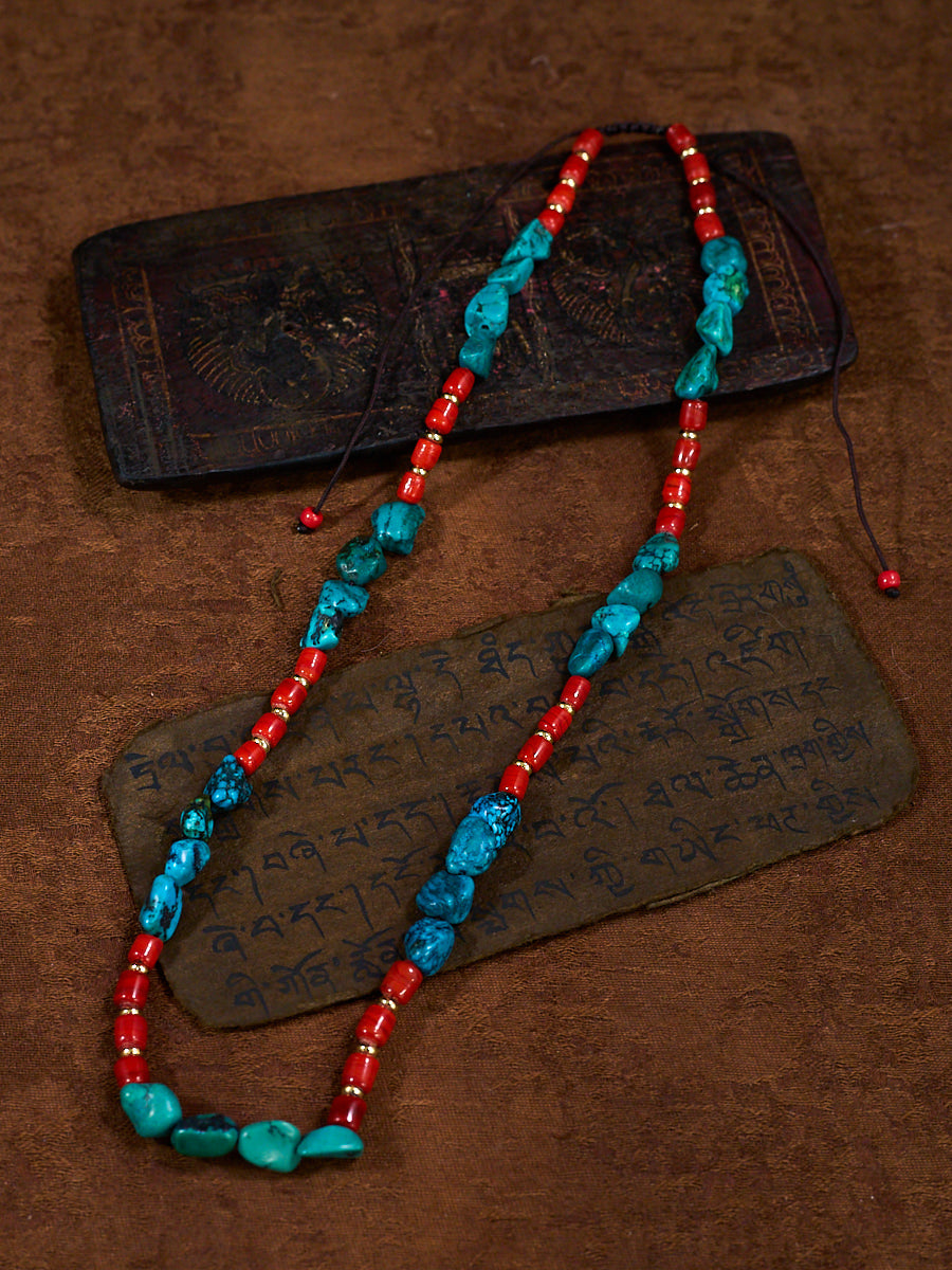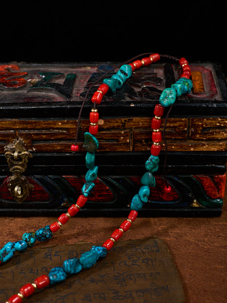 Mystic Energy Tibetan Style Turquoise & Coral Stone Necklace