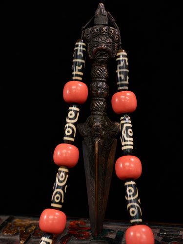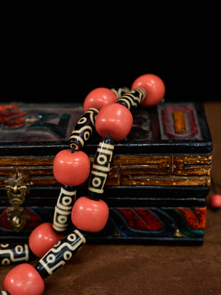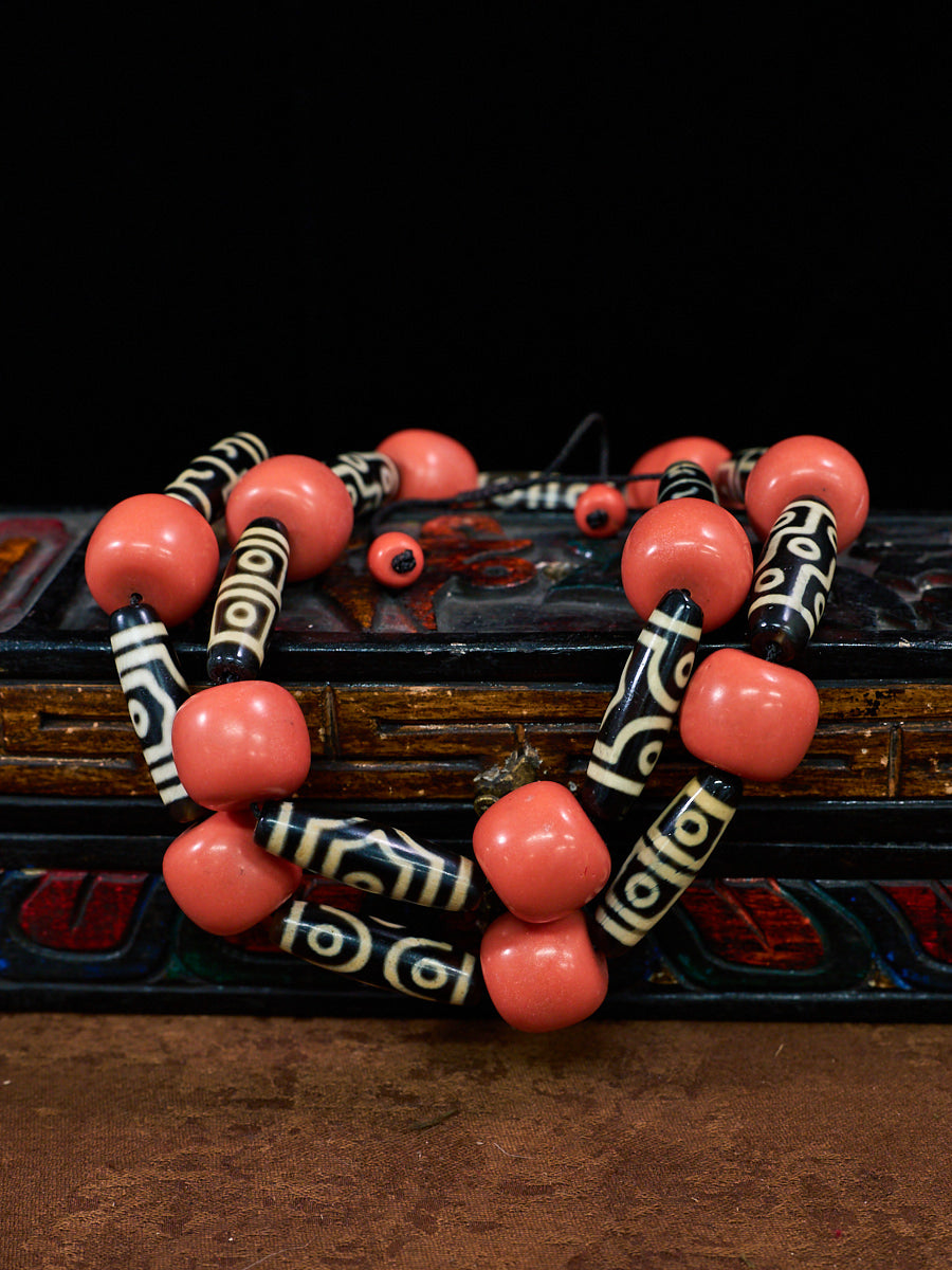 Tibetan Eternal Blessings Coral Stone & Dzi Bead Necklace