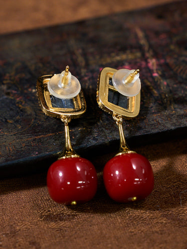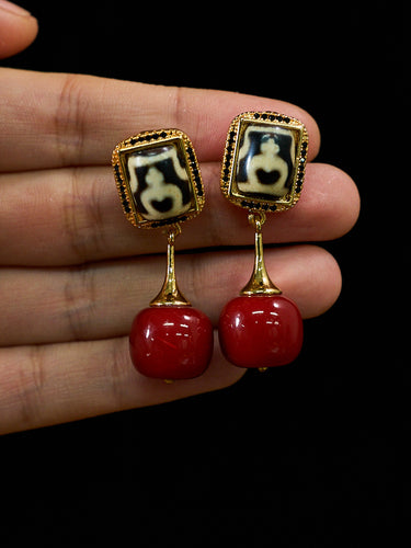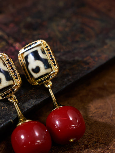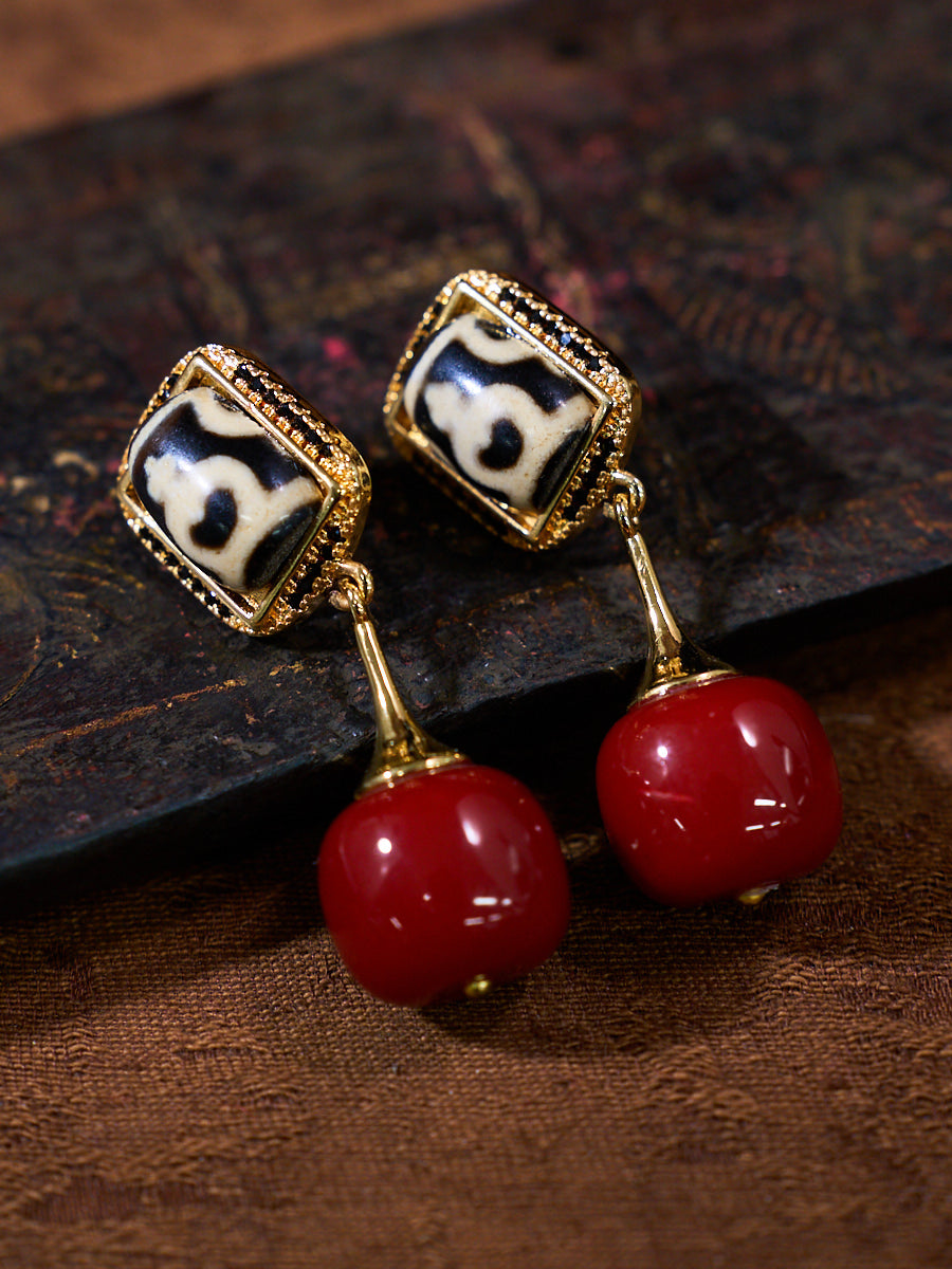 Tibetan Treasure Vase Dzi Coral Stone Earrings