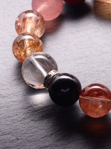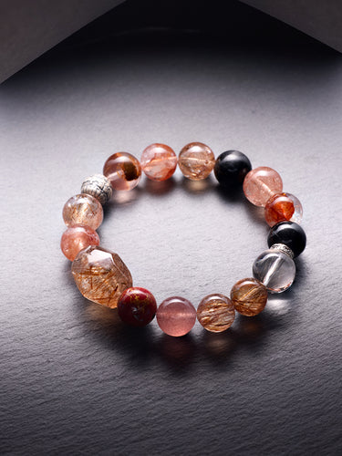 Eternal Wealth & Protection Crystal Bracelet – Black Gold Super Seven & Strawberry Quartz