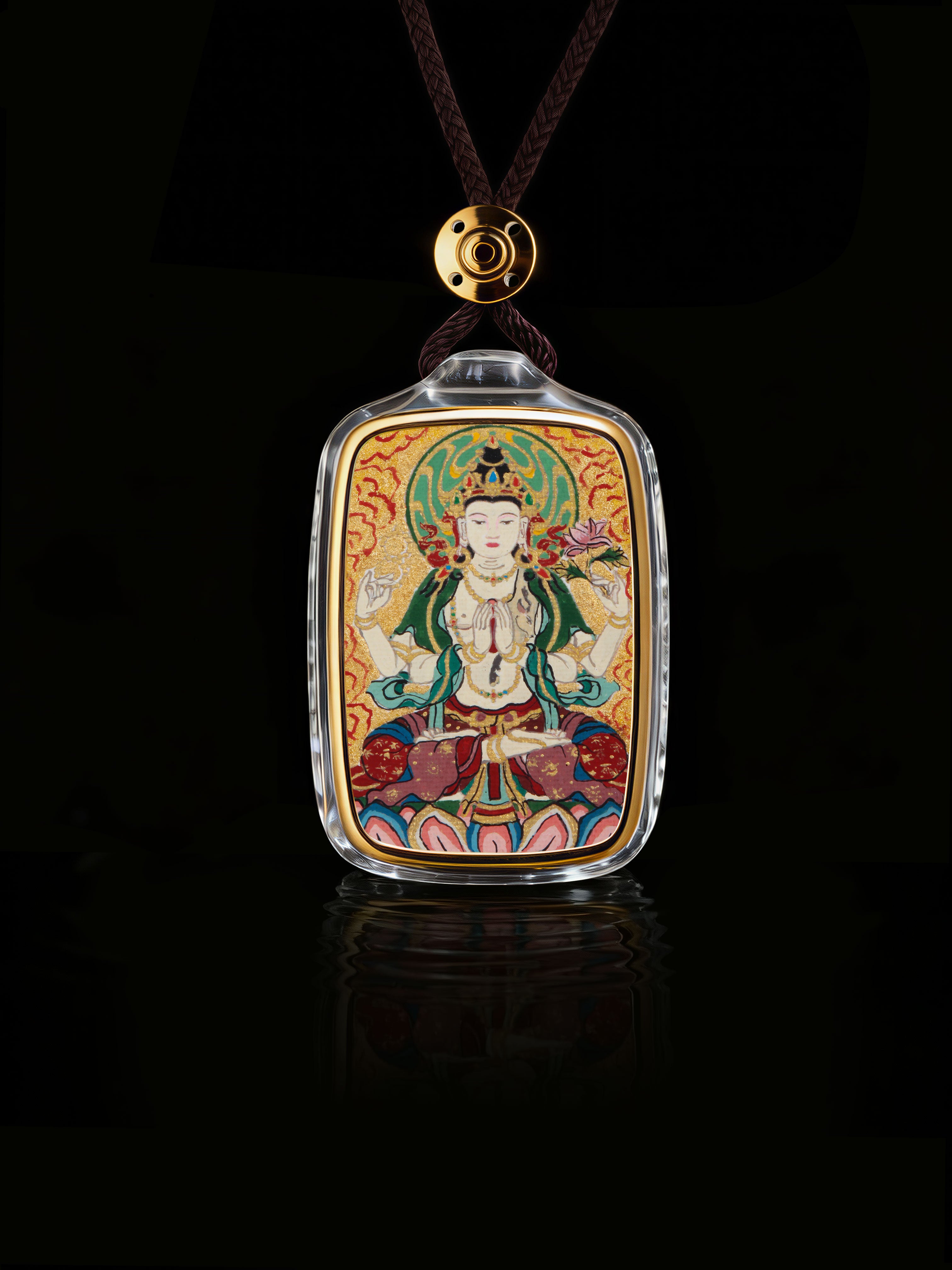 Peaceful Grace Four-Armed Avalokiteshvara Thangka Buddha Pendant