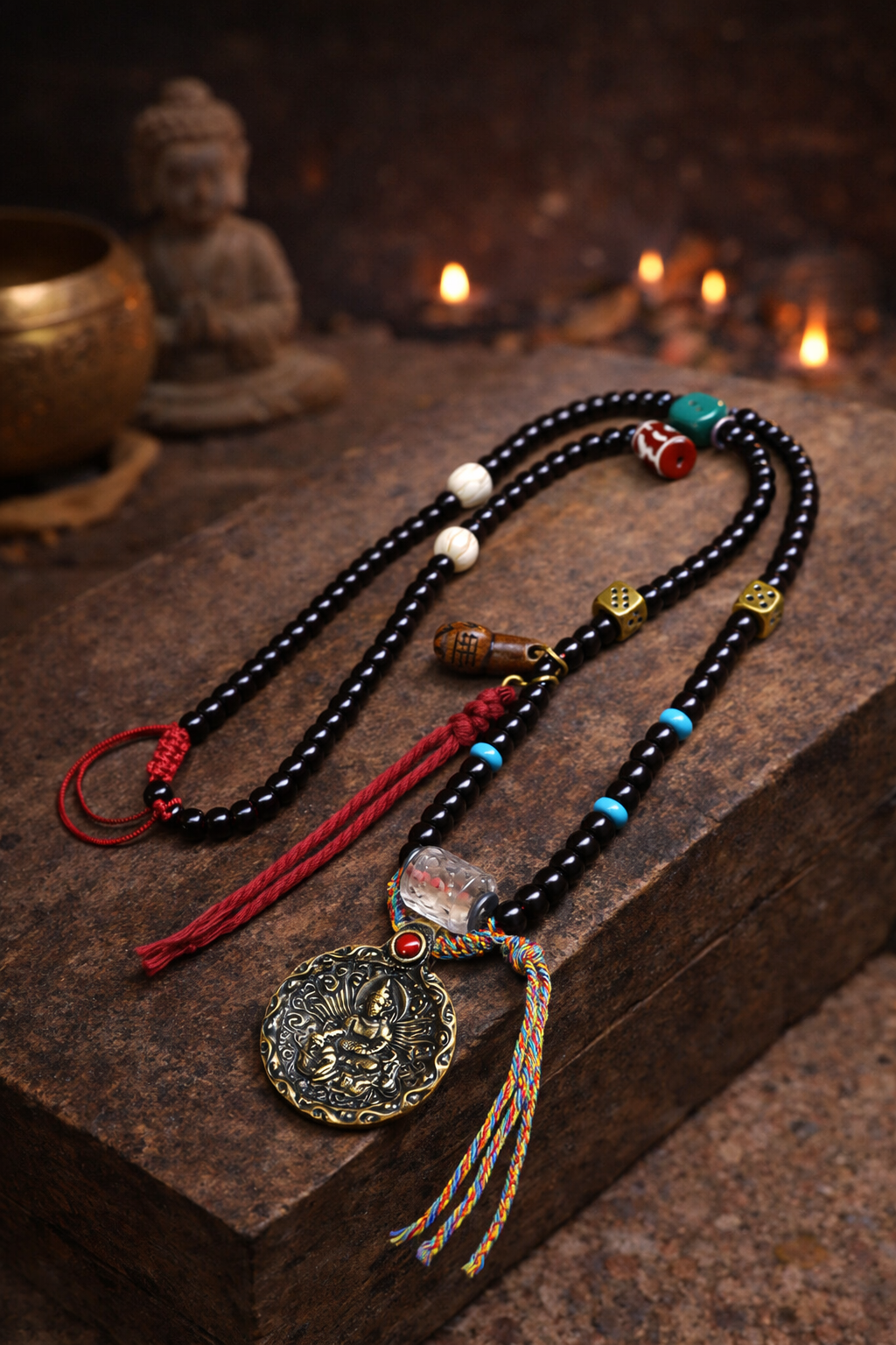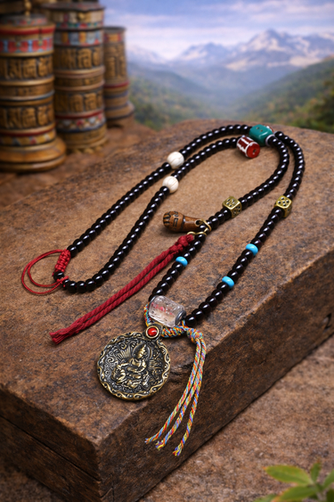 Warrior Deity Thokcha Silver Tibetan Mala Necklace