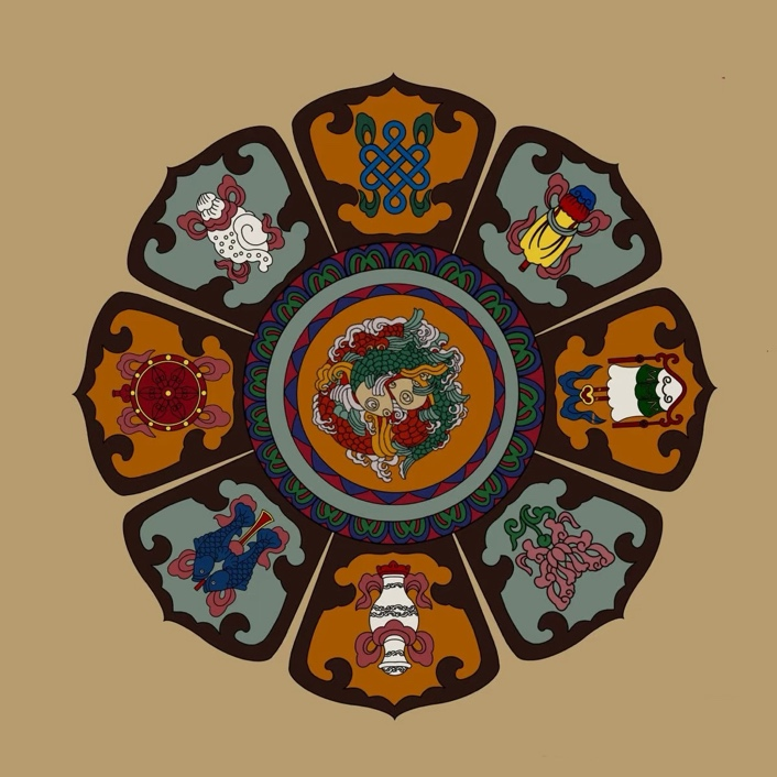 Auspicious Energy Eight Symbols Sterling Silver Thokcha Pendant