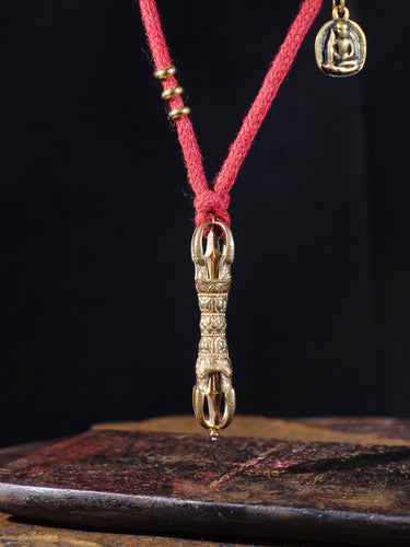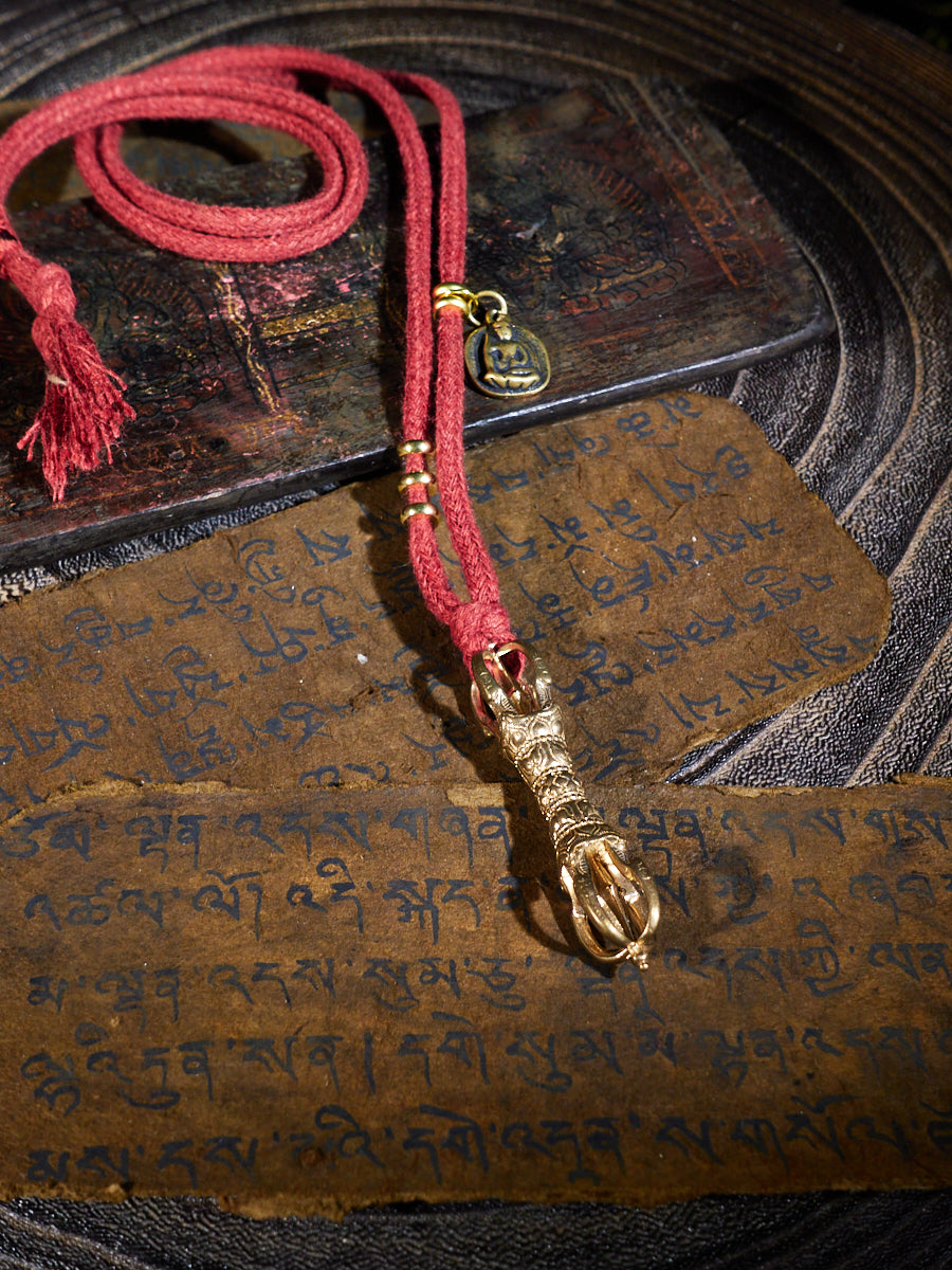 Rather than feeling ornamental, the pendant sits like a quiet anchor. Many practitioners view the vajra as a symbol of unshakable awareness—cutting through delusion, grounding the mind, and stabilizing one’s inner posture. For everyday wear, it gives a low-key but powerful energy: calm, focused, and steady. Ideal for those who resonate with Tibetan symbolism but prefer a more understated piece.