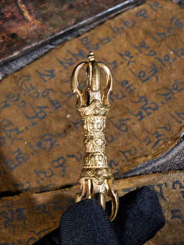 This vajra pendant is forged from Thokcha—Tibetan meteoritic iron long associated with resilience and sharp clarity. The piece keeps the traditional silhouette of a single-point vajra, compact yet unmistakably authoritative. Its surface carries the irregular grain and oxidized tones unique to ancient-style Thokcha casting, giving it that unmistakable “ritual tool” presence.