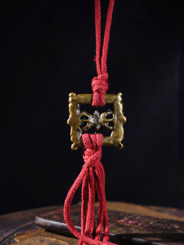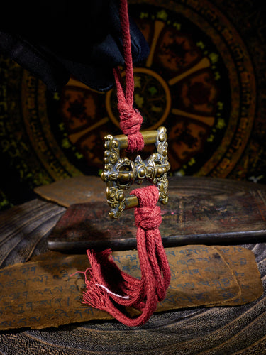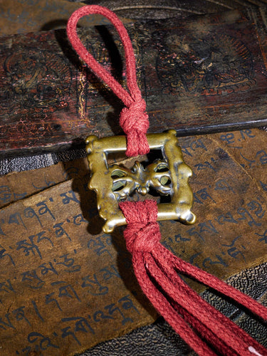 Combined with the scripture-holder design, this piece represents protection, stability, and spiritual guardianship. Whether hung on a bag, used as a charm, or placed as a meaningful decoration, it serves as a steadying talisman—clearing obstacles, grounding intention, and carrying forward the enduring strength of Tibetan ritual craftsmanship.