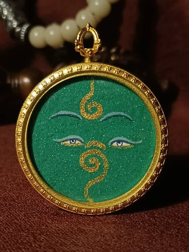 Tibetan Hand-Painted Green Tara Thangka Pendant
