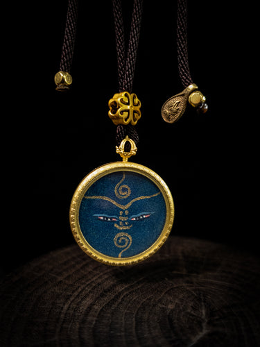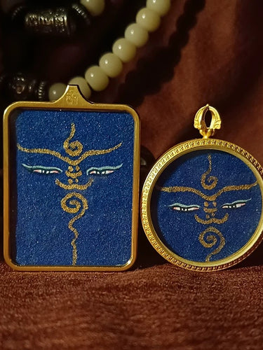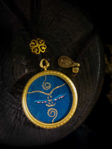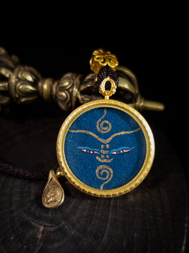 Tibetan Hand-Painted Thangka Pendant - Medicine Buddha Talisman