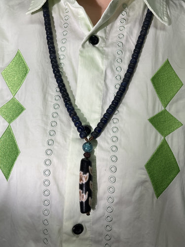 ăUnique Itemă Lapis & Turquoise Tibetan Dzi Pendant Necklace