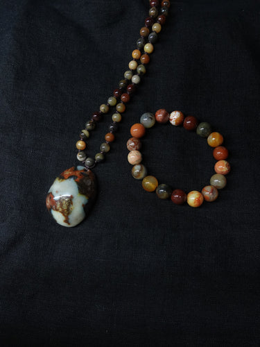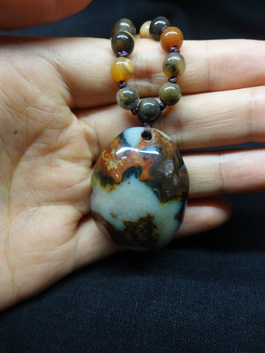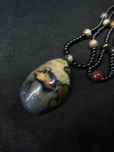 This necklace features Five Elements Gemstone. A Gemstone representing the five elements (metal, wood, water, fire, earth).This Five Elements Gemstone is believed to balance energies.