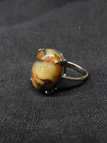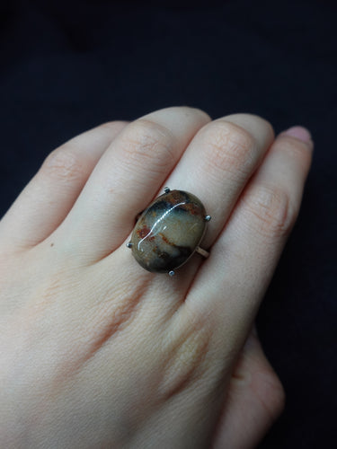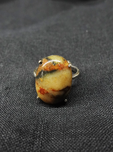 This ring features a silver base set with five element gemstones. A Gemstone representing the five elements (metal, wood, water, fire, earth).