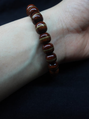 This is a unique spiritual bracelet imbued with the symbolism of fortune and protection. It features deep brown golden sheen agate beads, each one naturally speckled and laced with fine golden inclusions that shimmer with warmth and depth. A delicate gold stripe runs through the center of each bead, symbolizing the flow and gathering of energy. The entire bracelet presents a balanced and harmonious aesthetic.