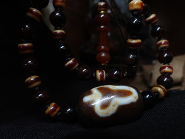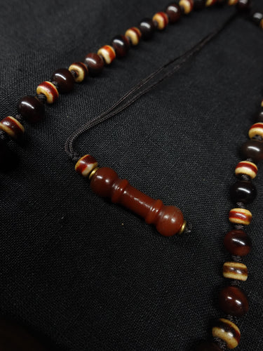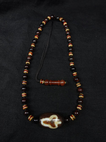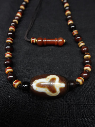 【Unique Item】 Old Agate Six-Syllable Mantra Bodhi Dzi Bead Necklace