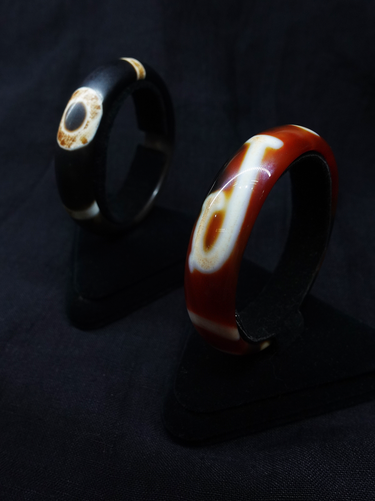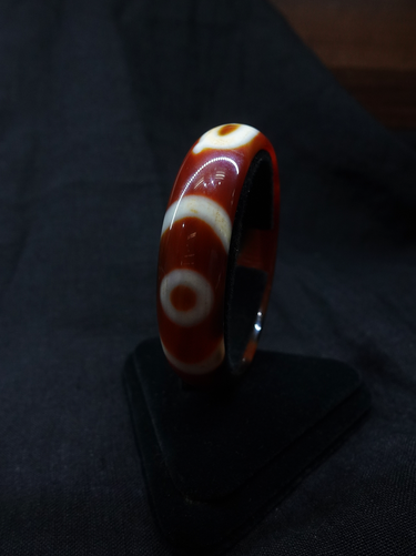 This bracelet features an agate with a sacred money hock pattern. The unique eye design on the agate creates a striking contrast, adding a sacred, mysterious touch that embodies traditional cultural charm.