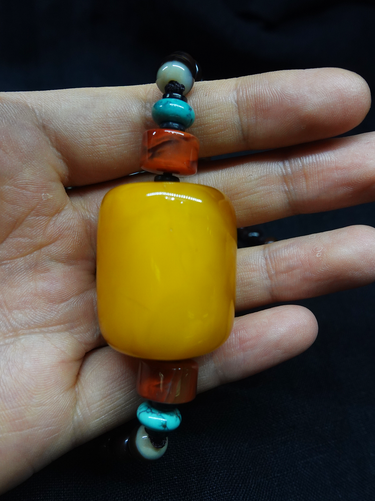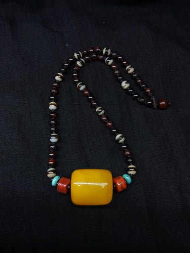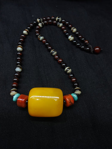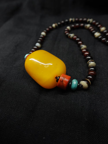 【Unique Item】 Tube Bead Amber String Bead Raw Mineral Heavenly Bead Necklace