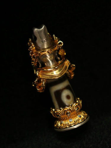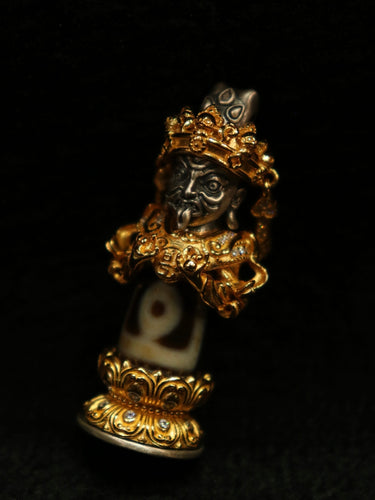 Fierce Guardian Dzi Bead Pendant – Protector for Strength & Blessings