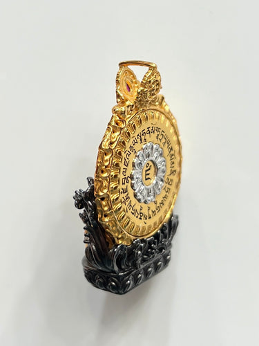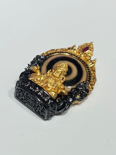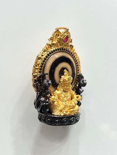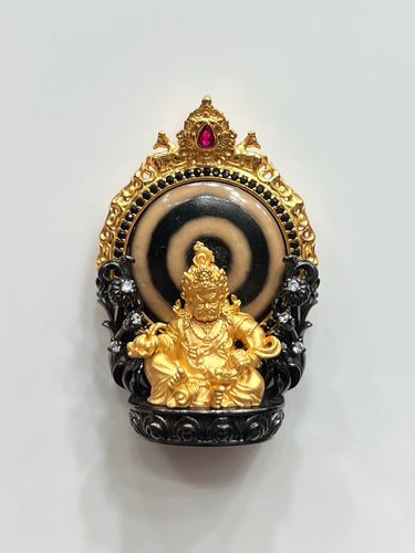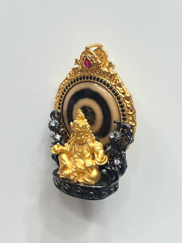 Golden Eye of Wealth Pendant – Blessing Energy, Dzi Bead, Gilded Deity Pendant