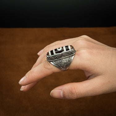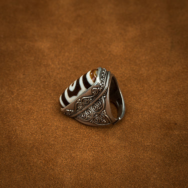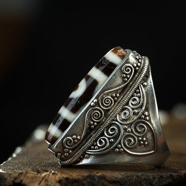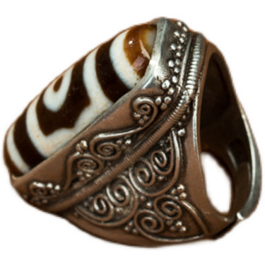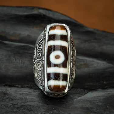 Three-Eye Dzi Bead Wealth Ring – Spiritual Blessing and Prosperity Protection