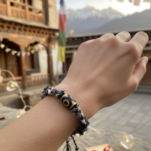 Mystic Fortune Black Gold Dzi Sherpa Bracelet