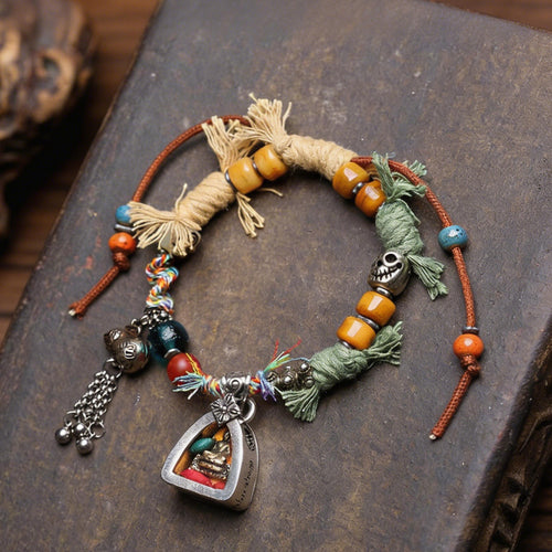 Handwoven Six Syllable Mantra Silver Enamel Bracelet for Love Luck and Eternal Protection